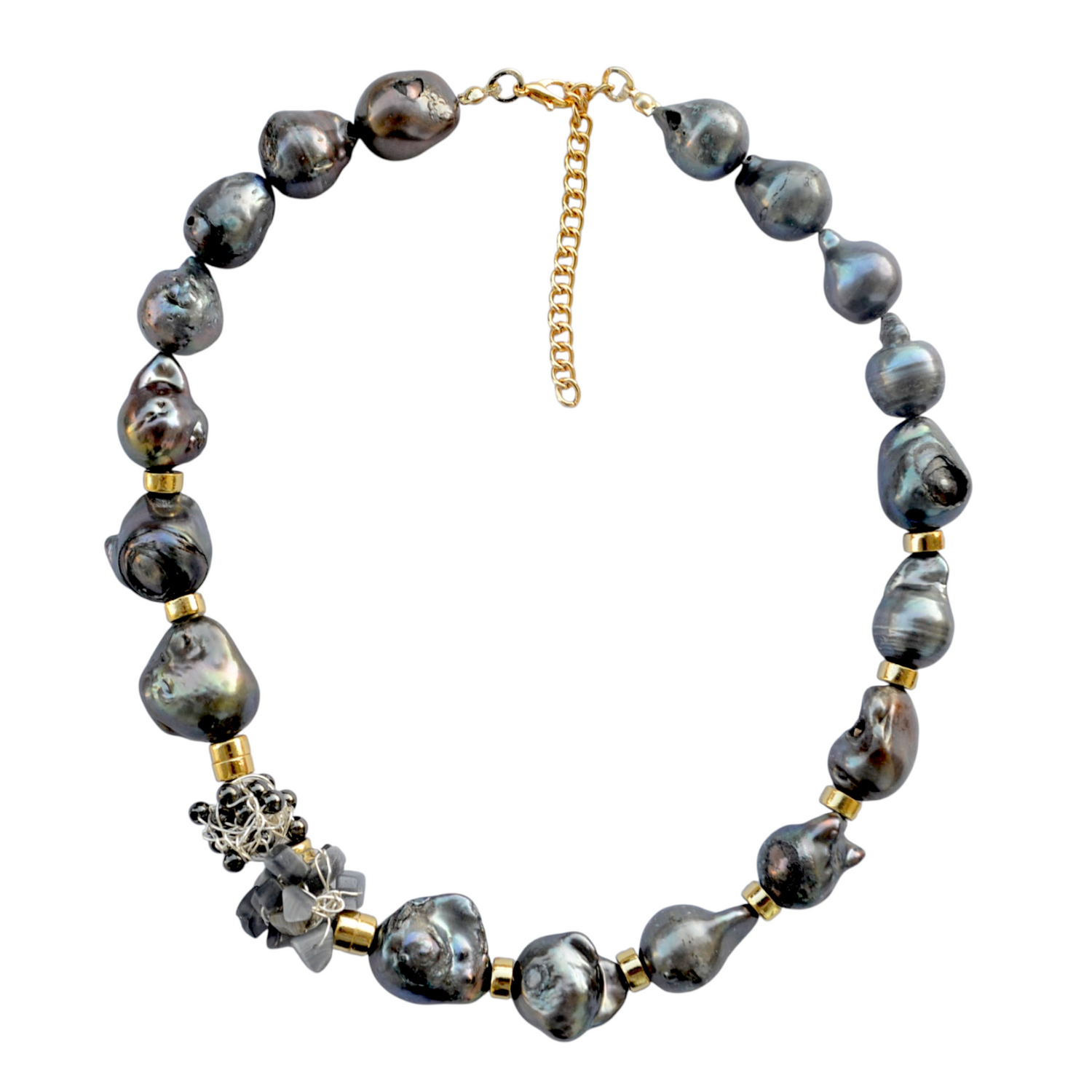 Hematit ve Labradorit Taşlı Asimetrik Küpe