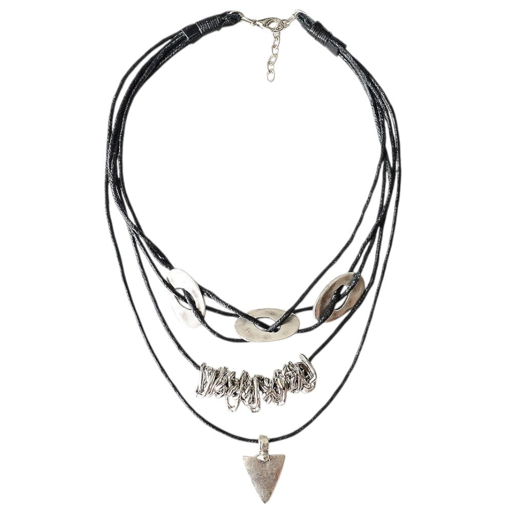 Doğal İncili Siyah Hakiki Deri Kolye
