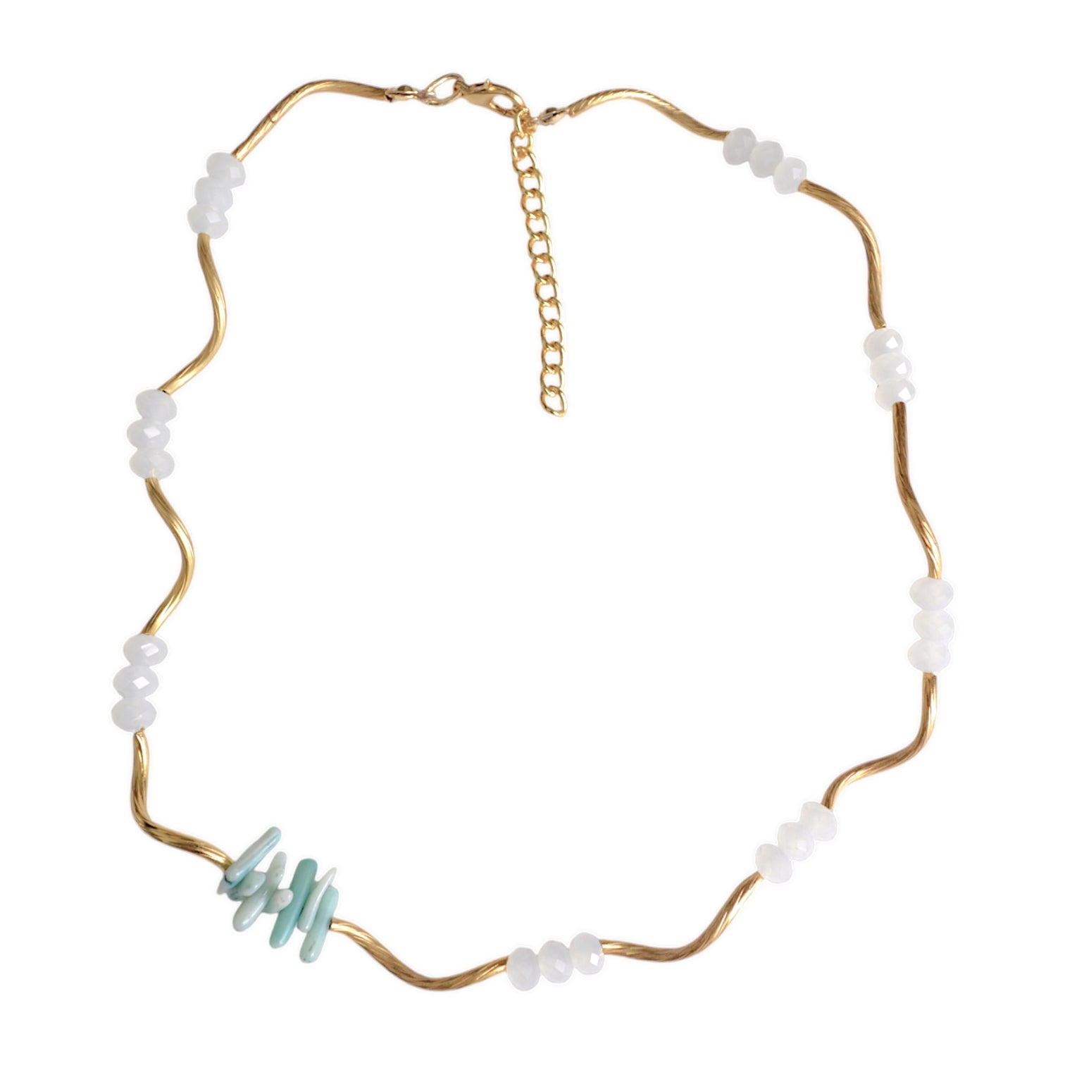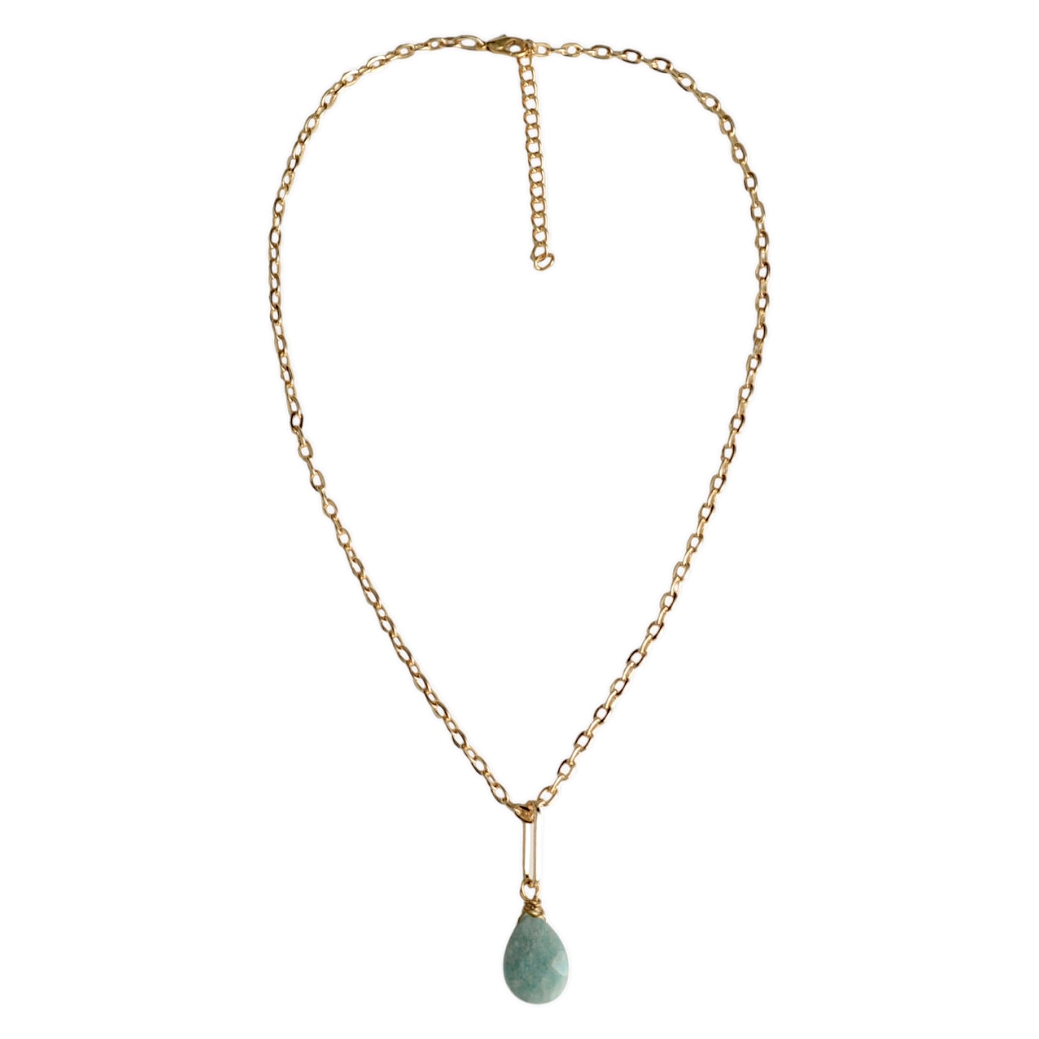 Damla amazonit taşı, mercan, kristal, altın kaplama metal