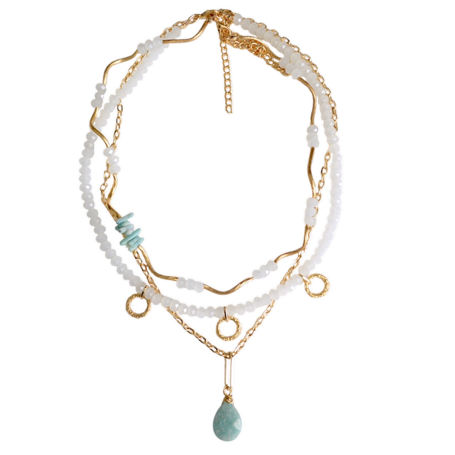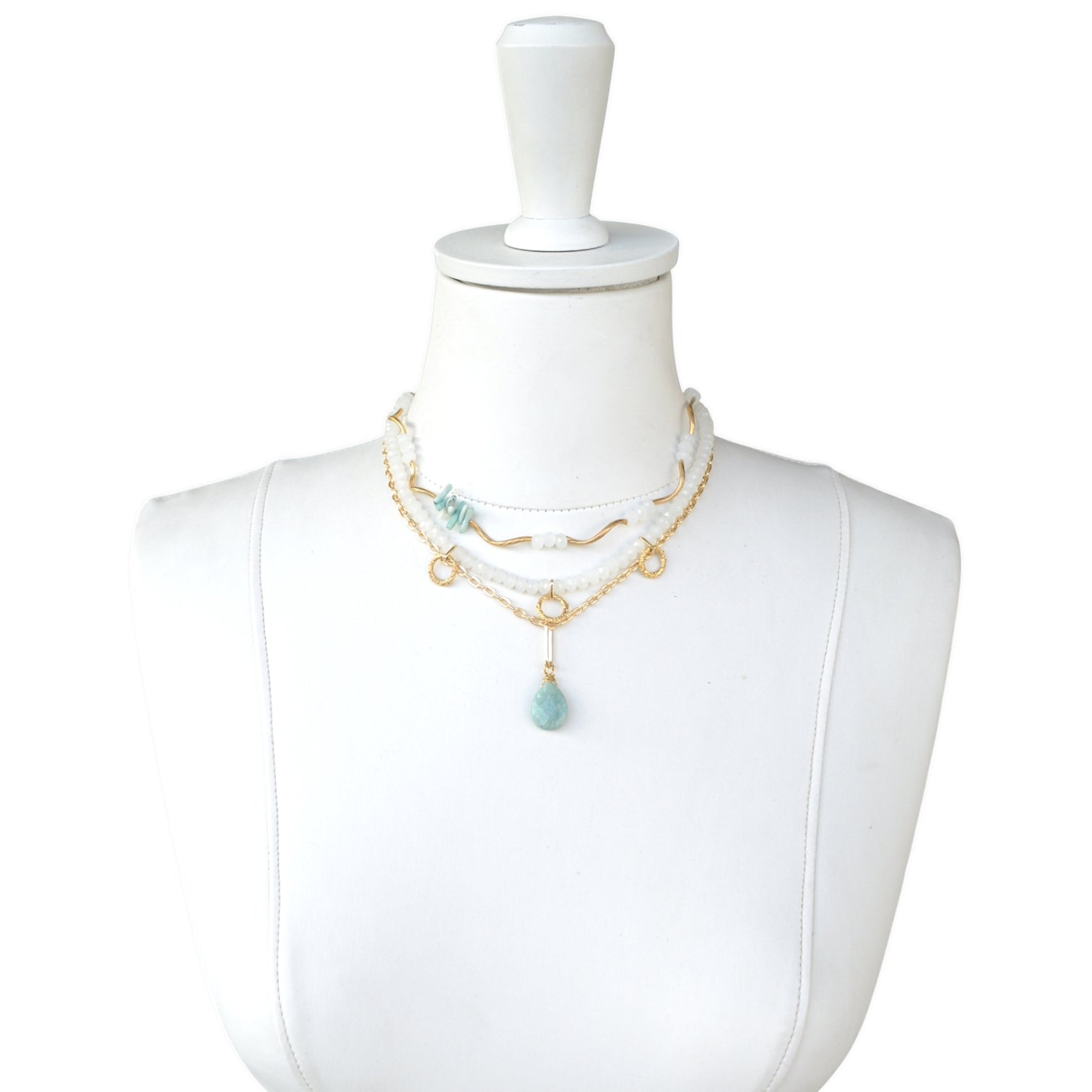Amazonit ve Mercan Taşlı 3lü Kolye Set