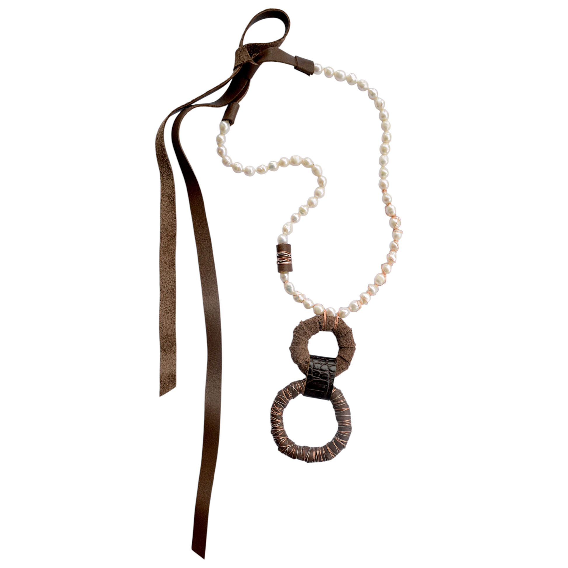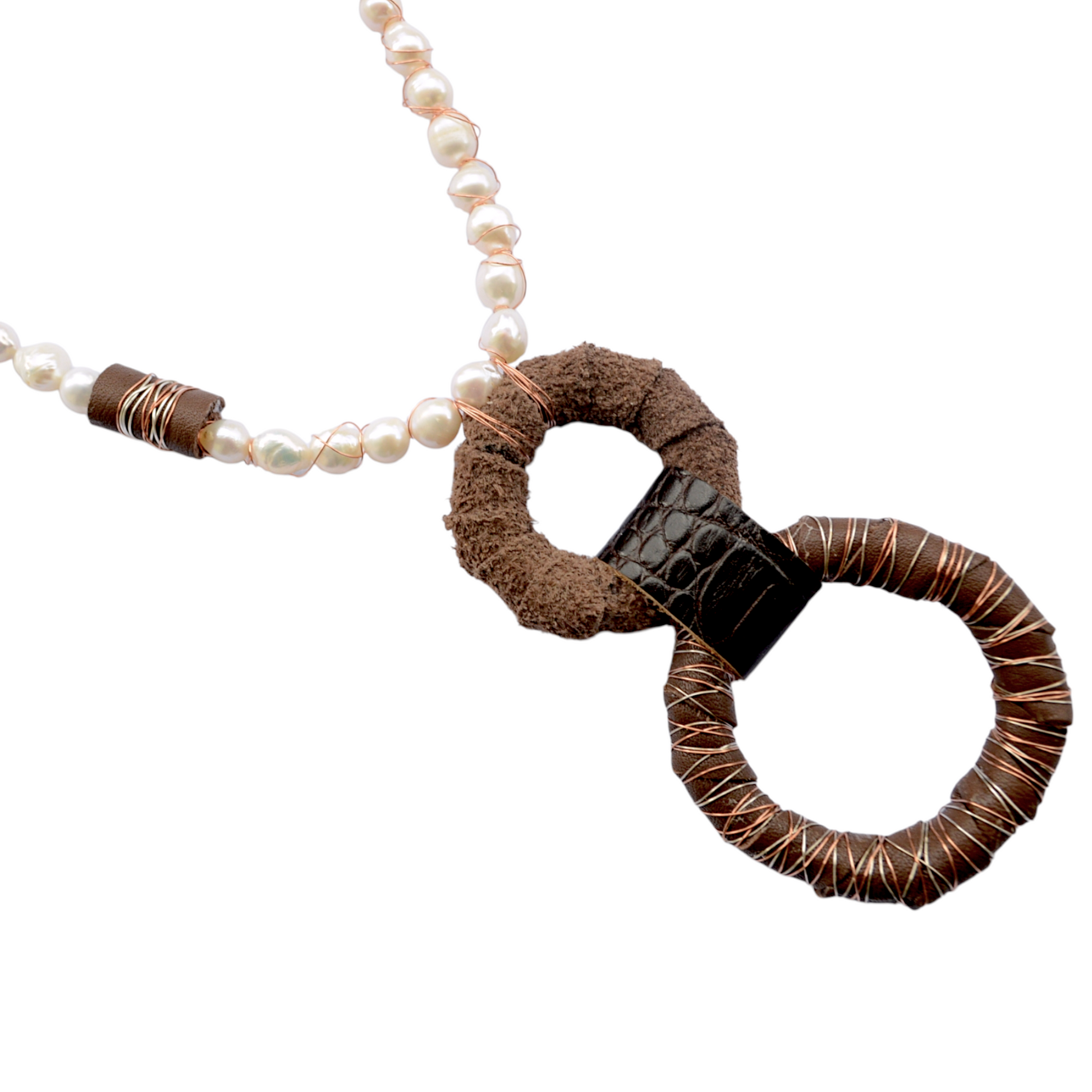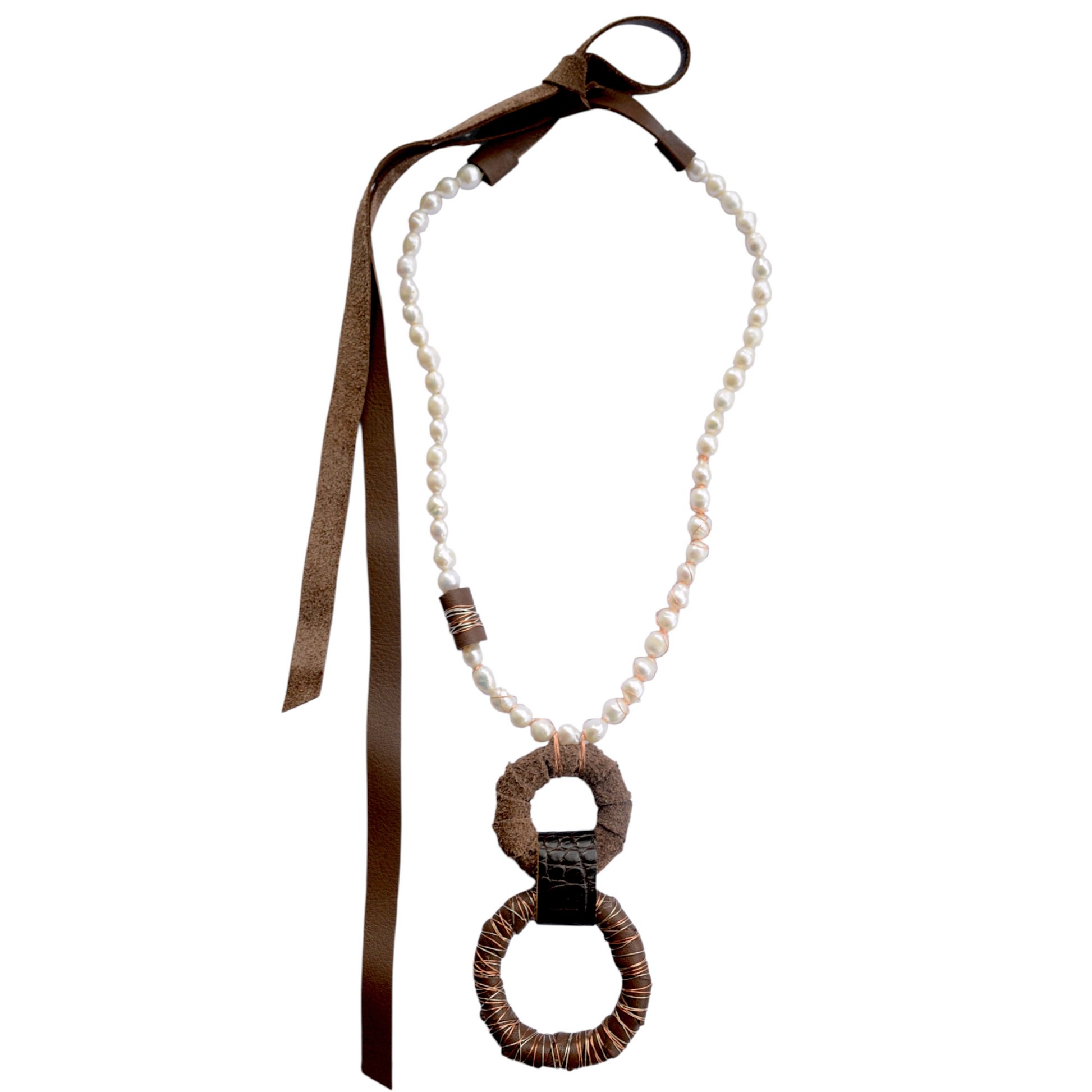 Kahverengi Derili İnci Kolye