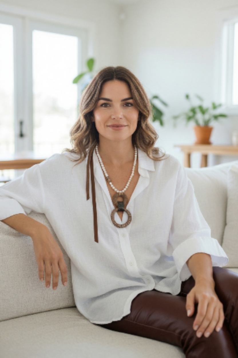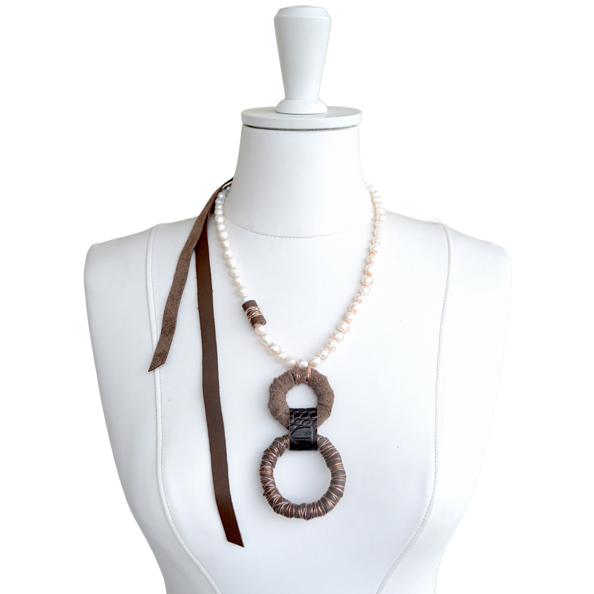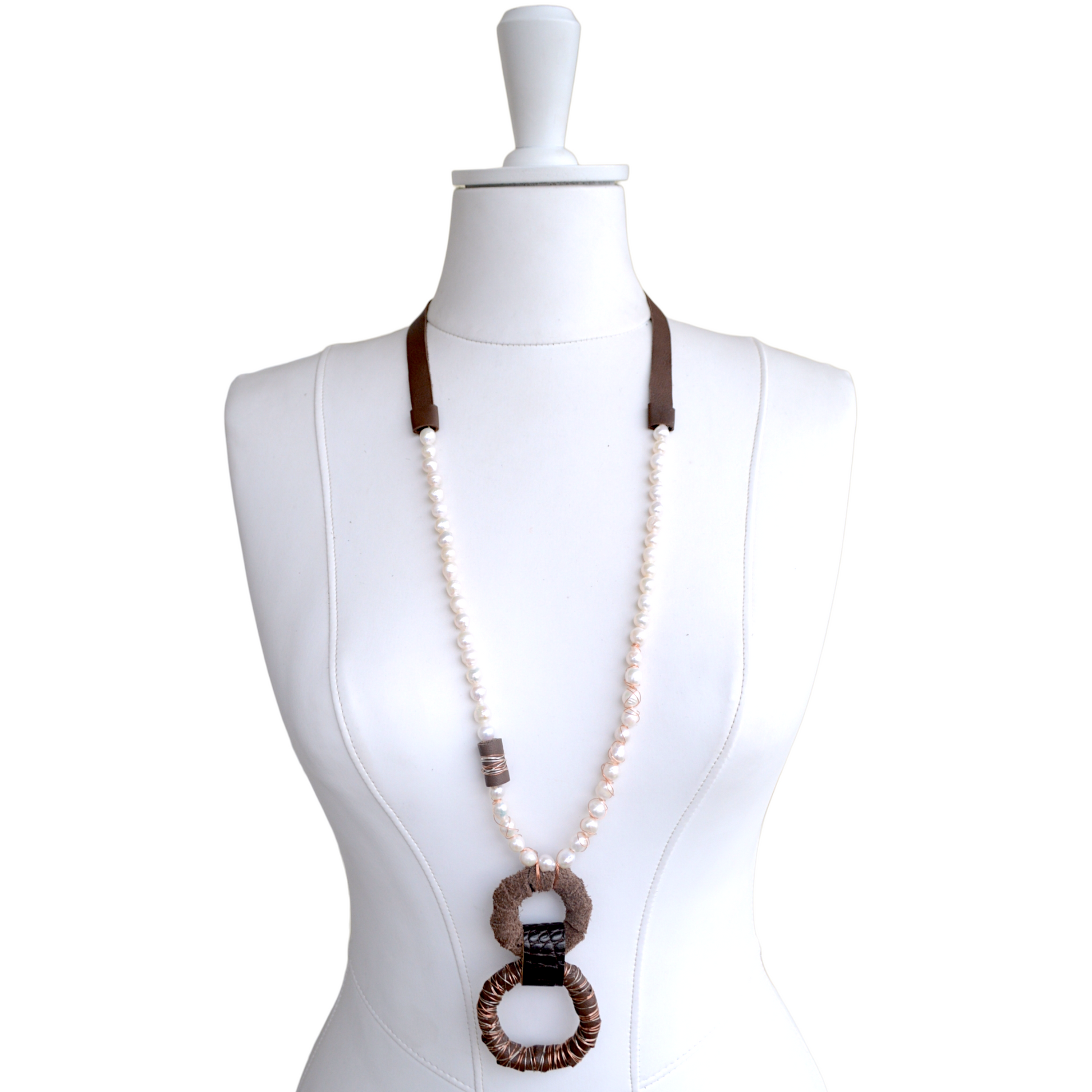 Kahverengi Derili İnci Kolye