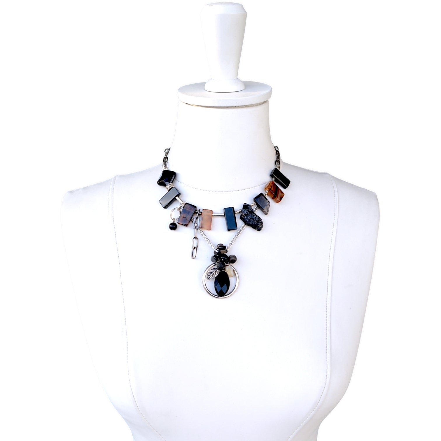 Akik ve Oniks Taşlı 2li Kolye Set