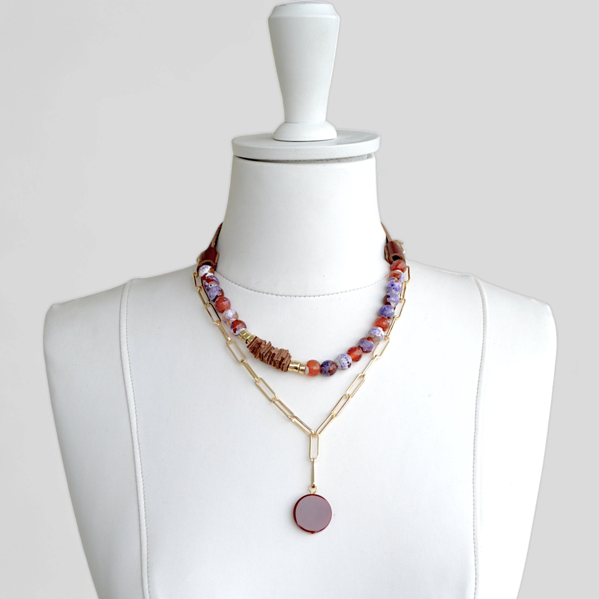 Akiki Taşlı 2li Kolye Set