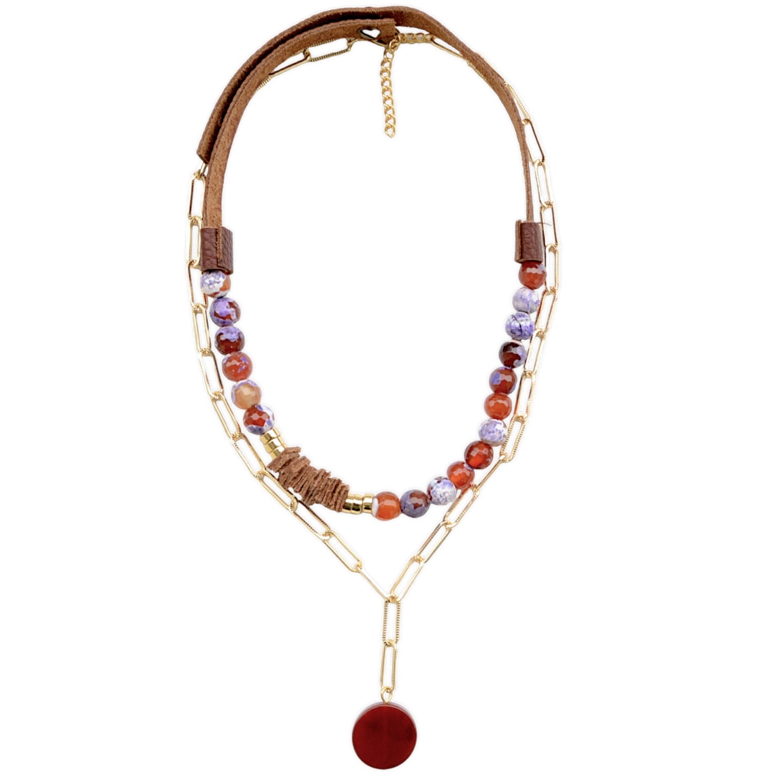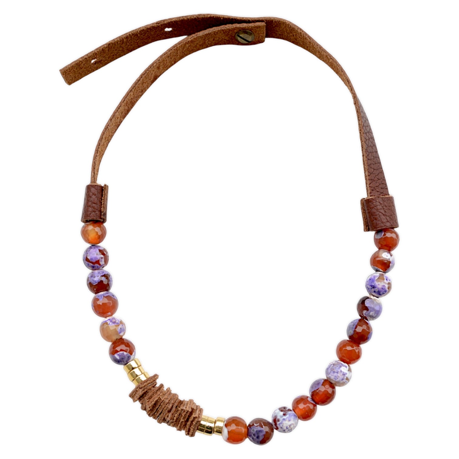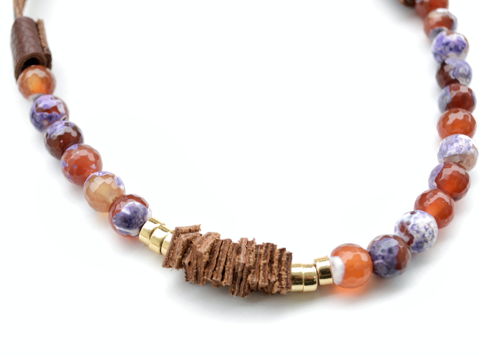 Akik taşı, hakiki deri, altın kaplama metal