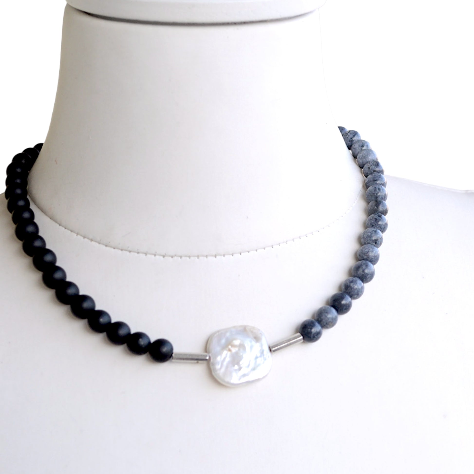 Barok İncili 2 Renk Doğal Taş Kolye