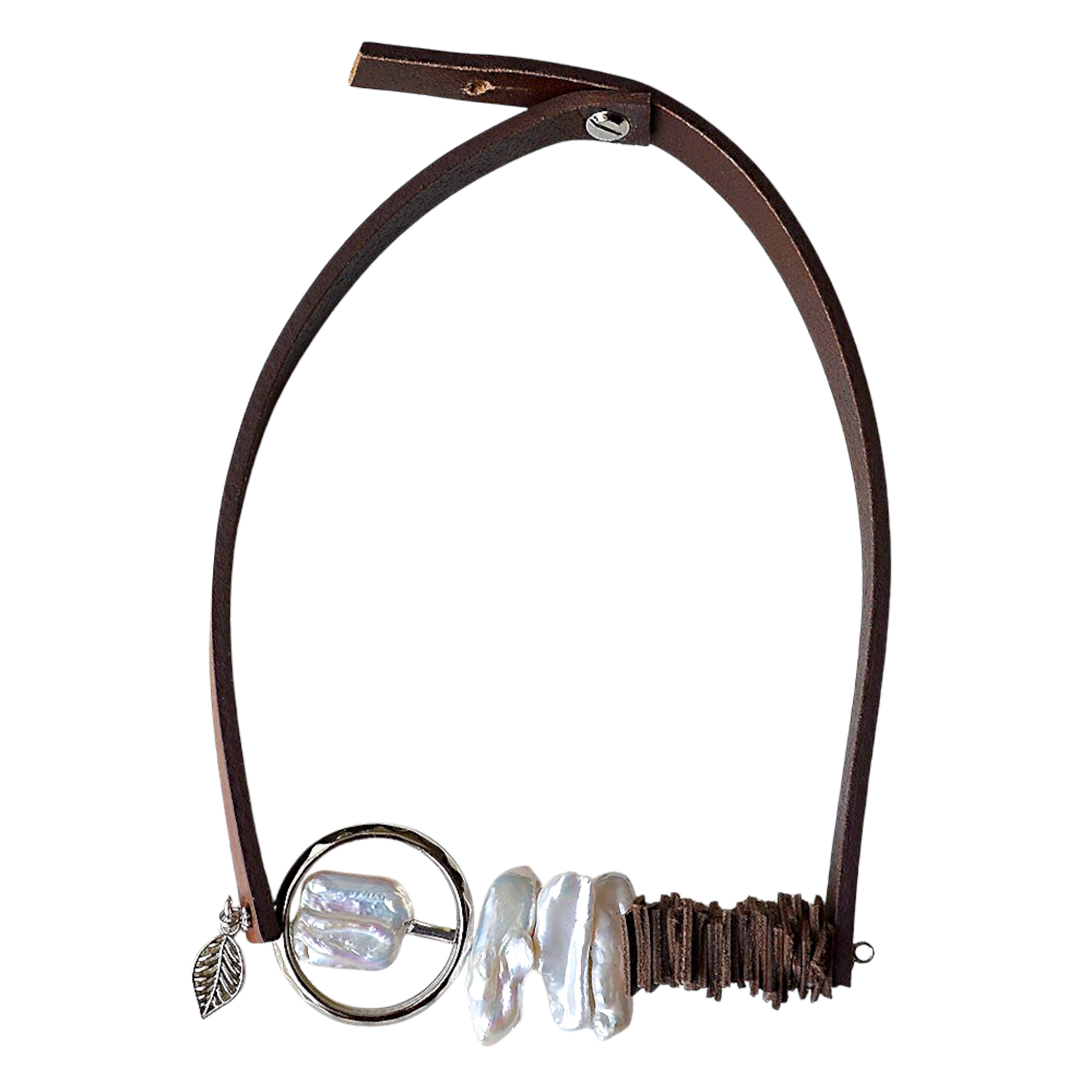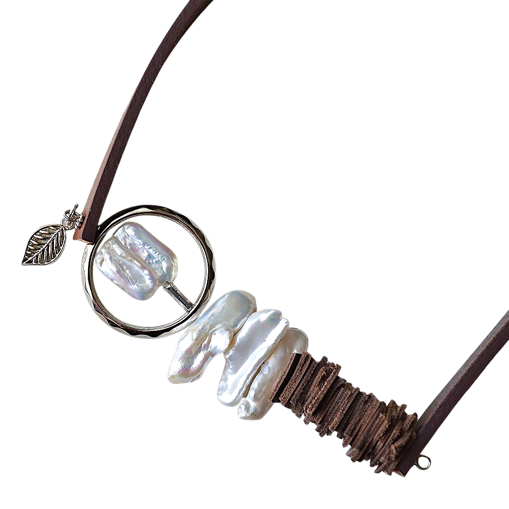 Barok ve Sakız İncili Kahverengi Deri Kolye