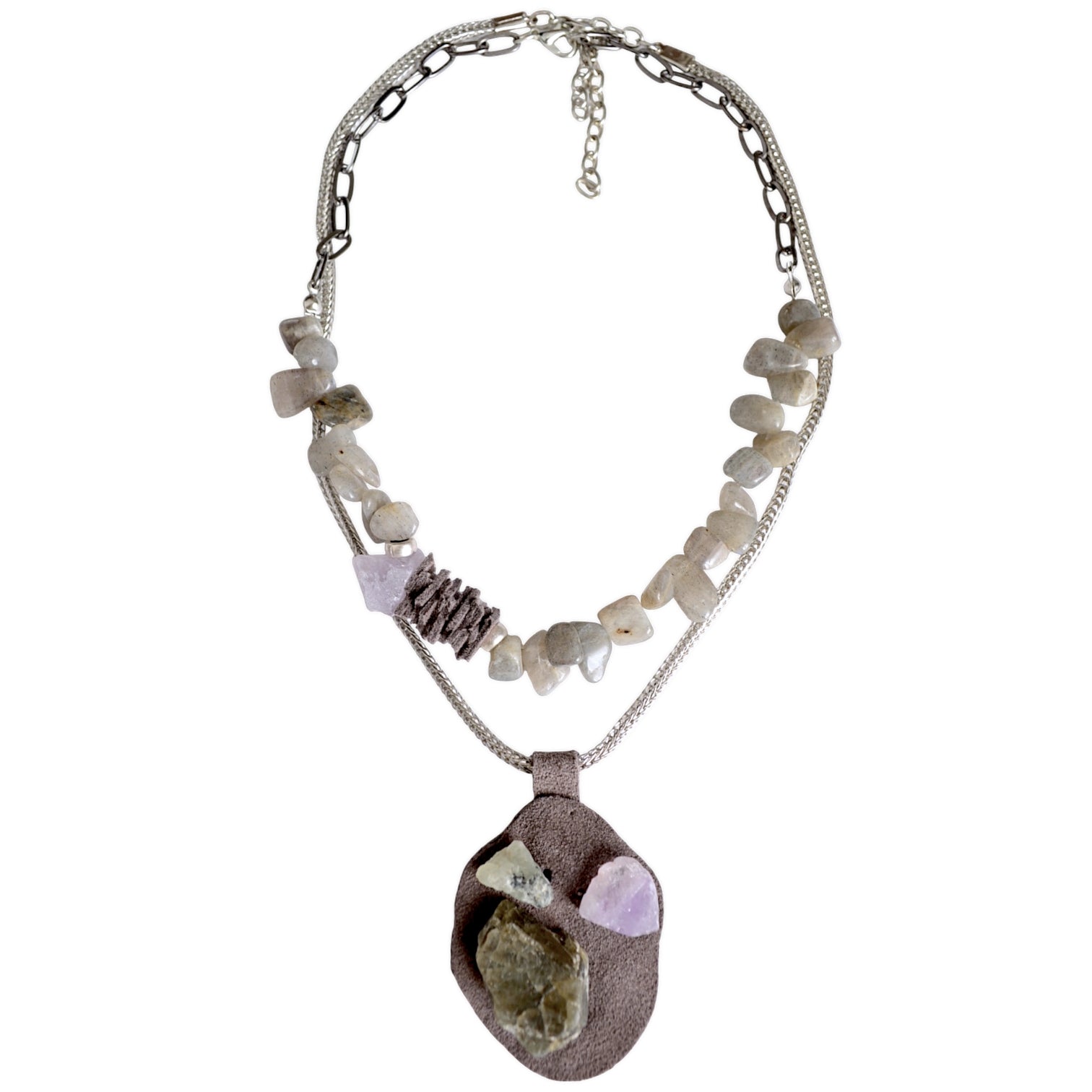 Deri Detaylı 2li Doğal Taş Kolye Set