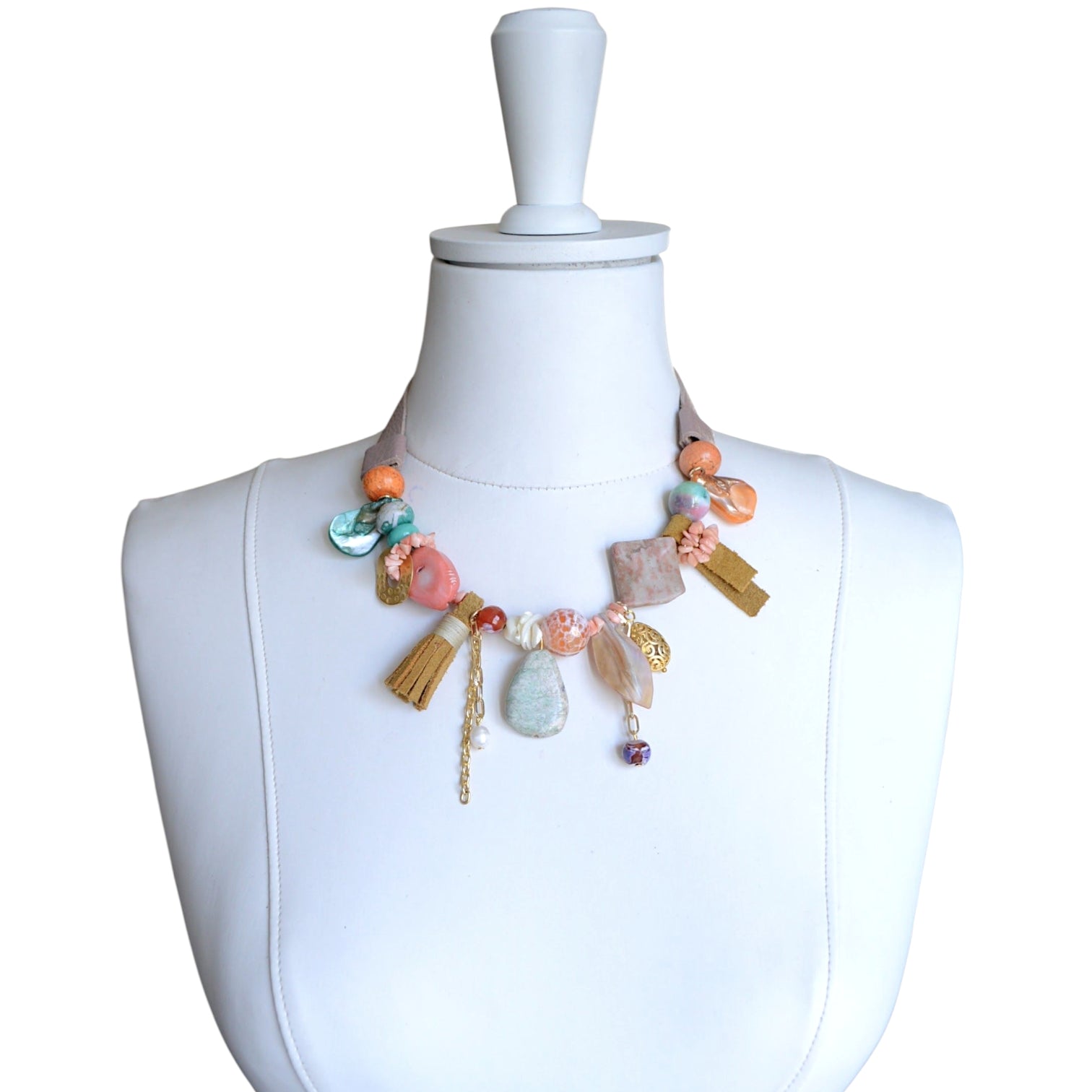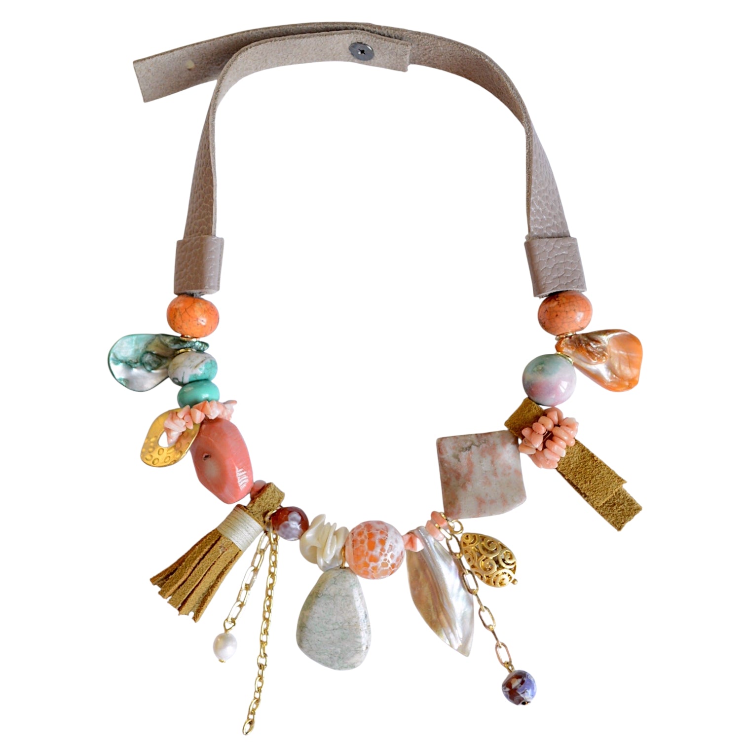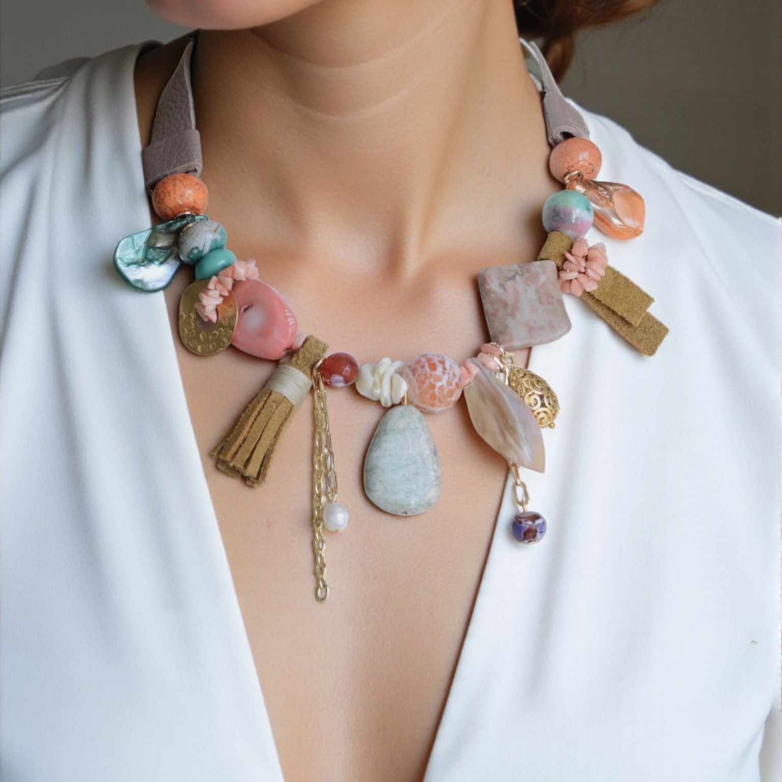 Deri Detaylı Doğal Taş Kolye