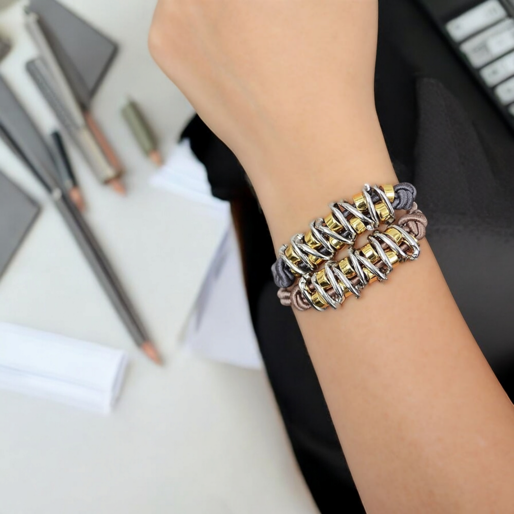 İki Renk Metalli Kahverengi Kordon Bileklik