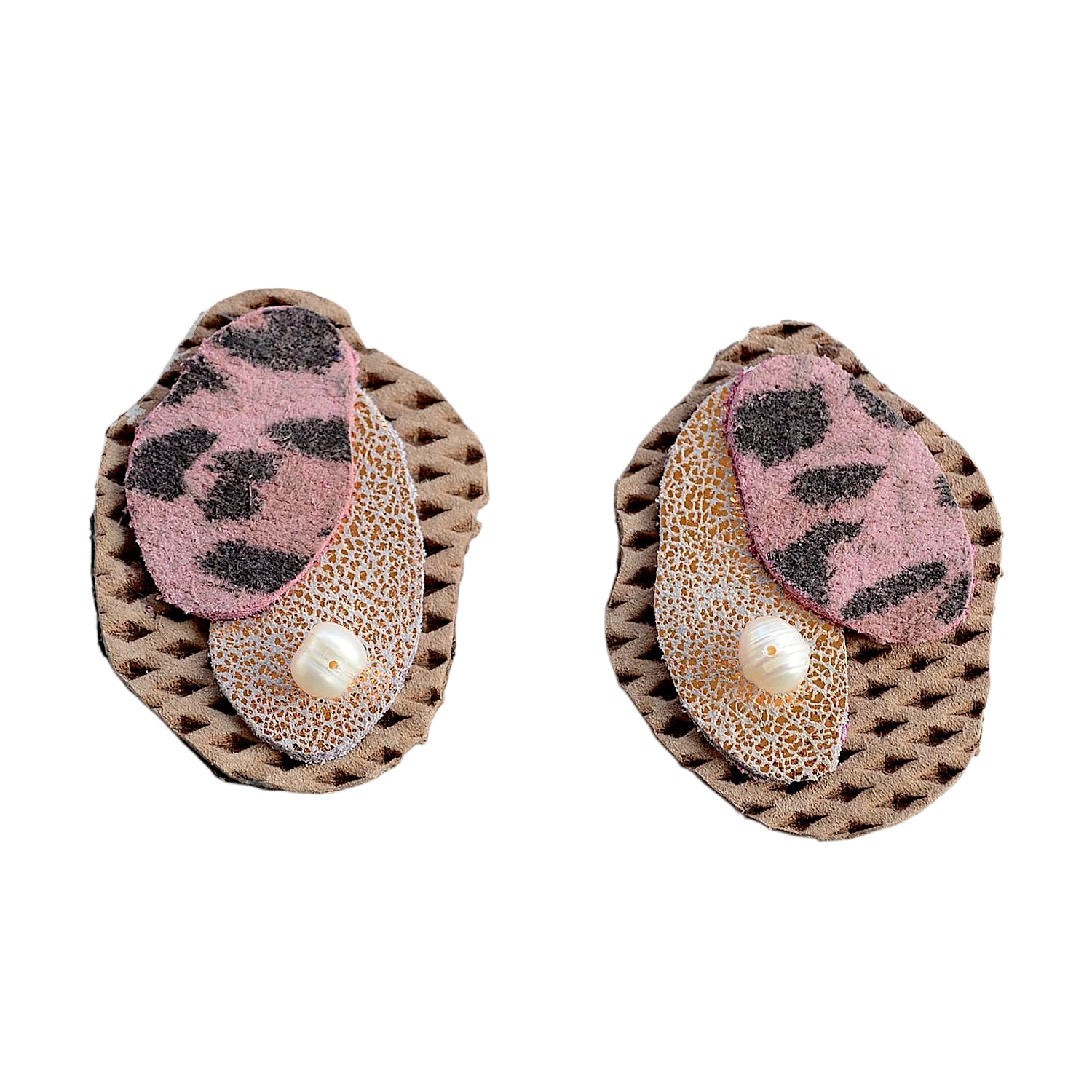 İnci Detaylı Leopar Desenli Deri Küpe