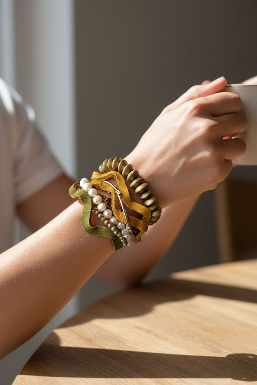 Tatlı su incisi, ahşap, kristal, hakiki deri