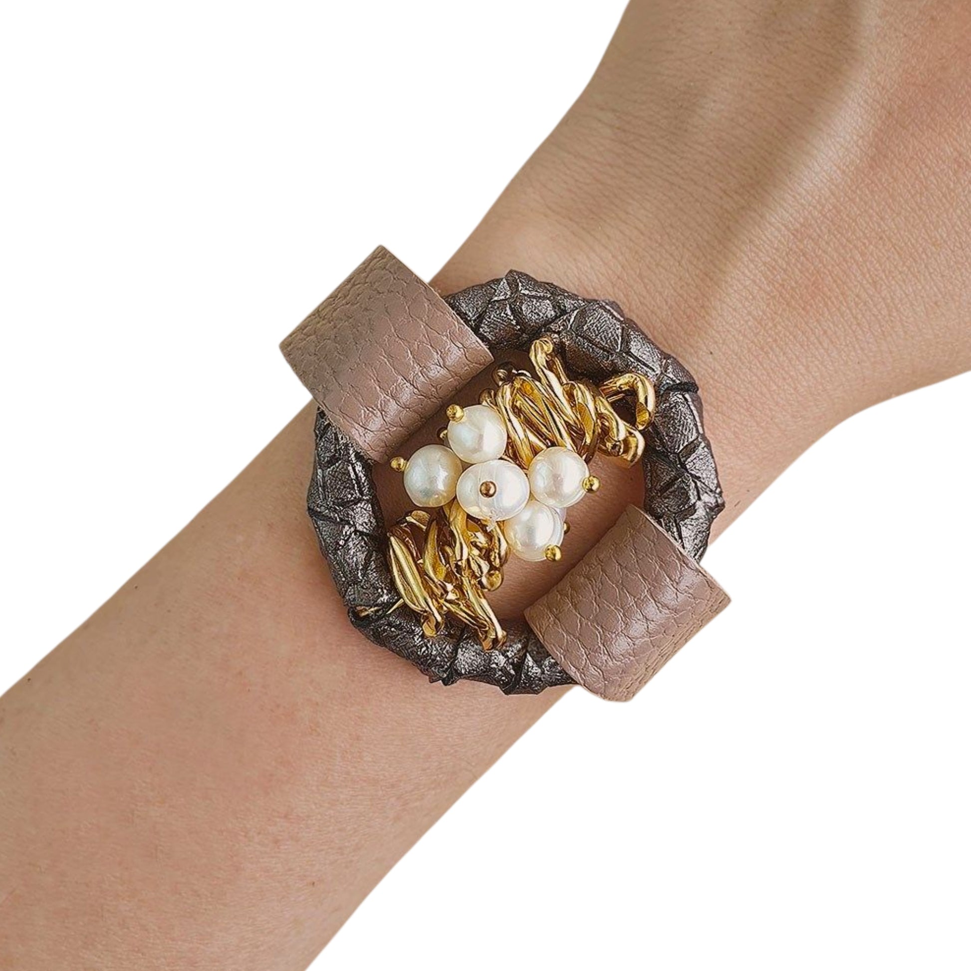 İncili Deri Bileklik
