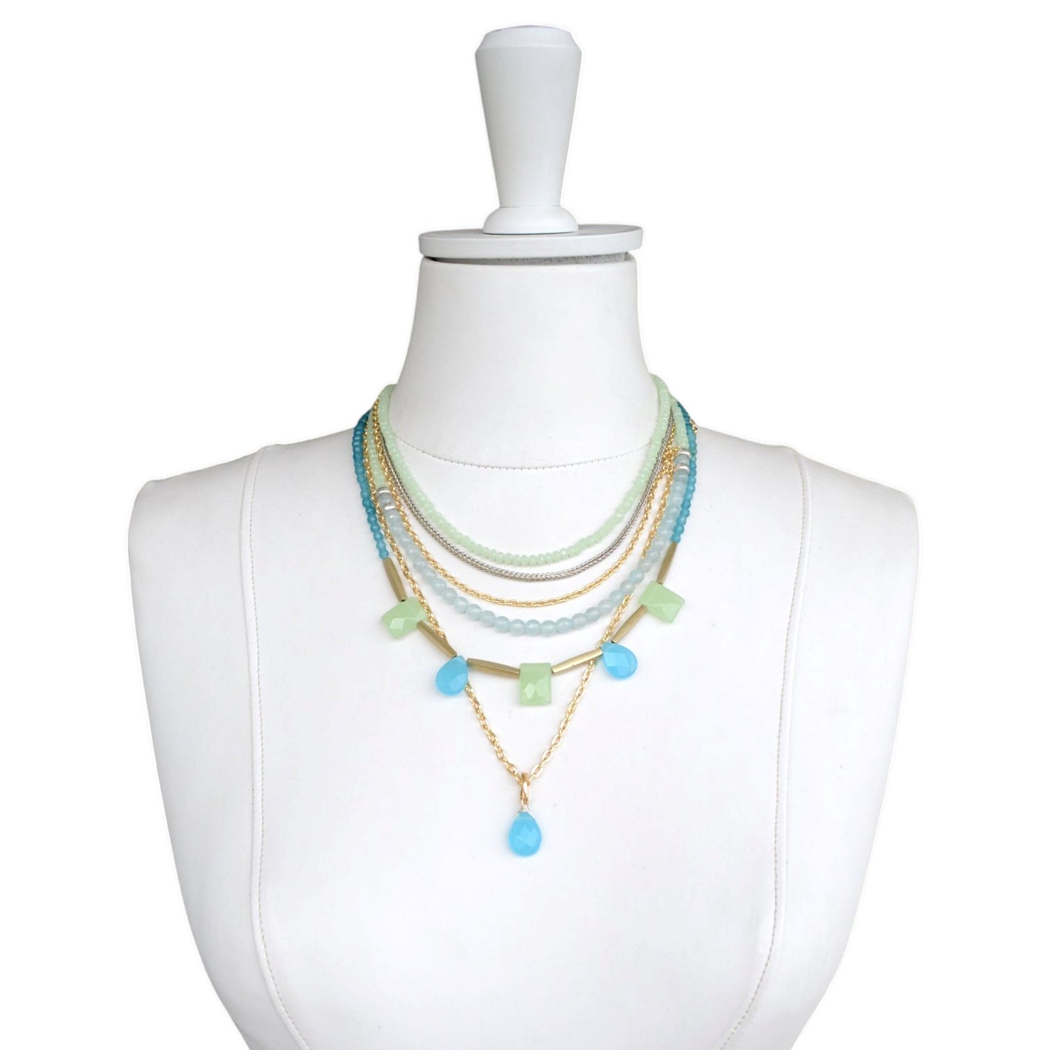 Kuvars Taşlı 3lü Kristal Kolye Set