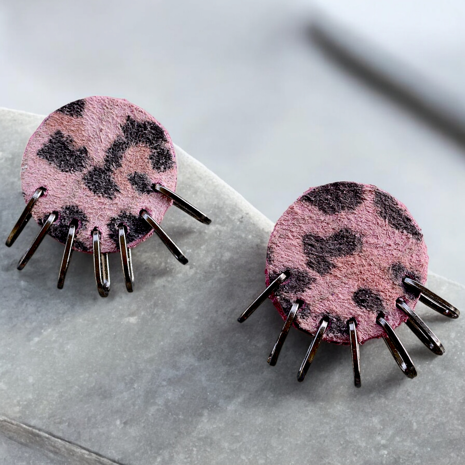 Leopar Desenli Deri Küpe