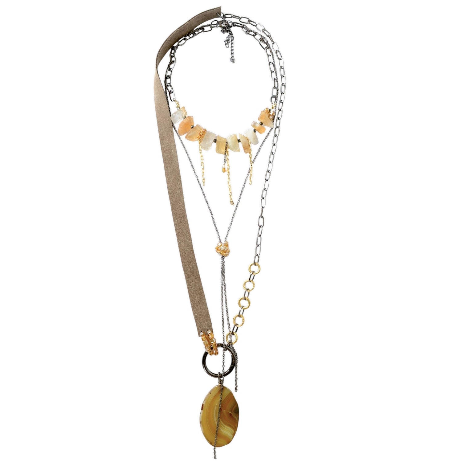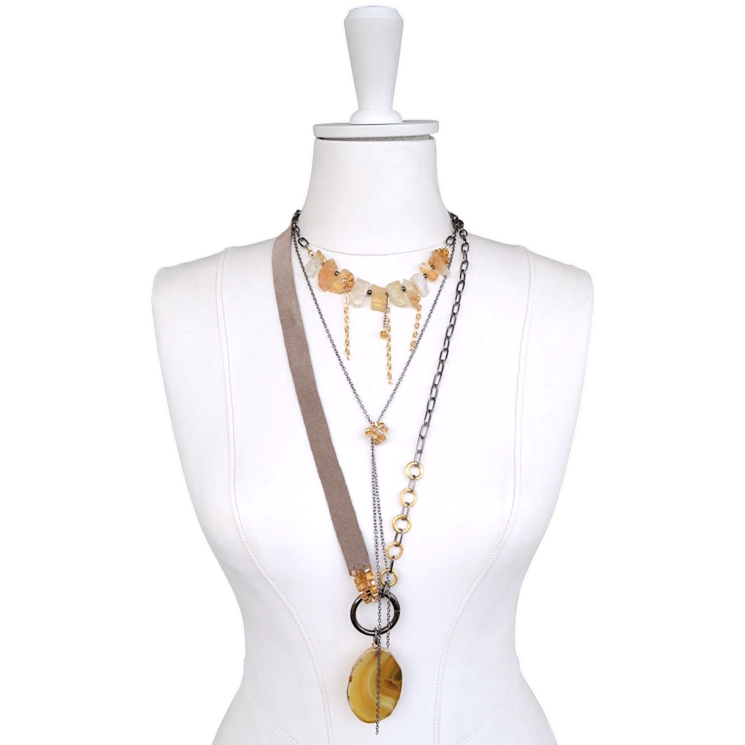 Sitrin ve Akik Taşlı 3lü Kolye Set