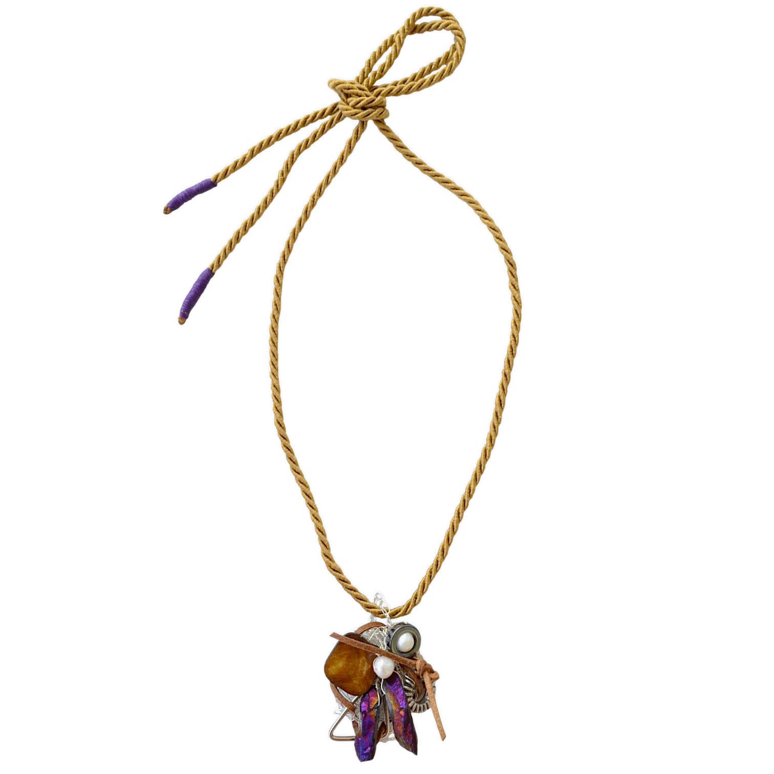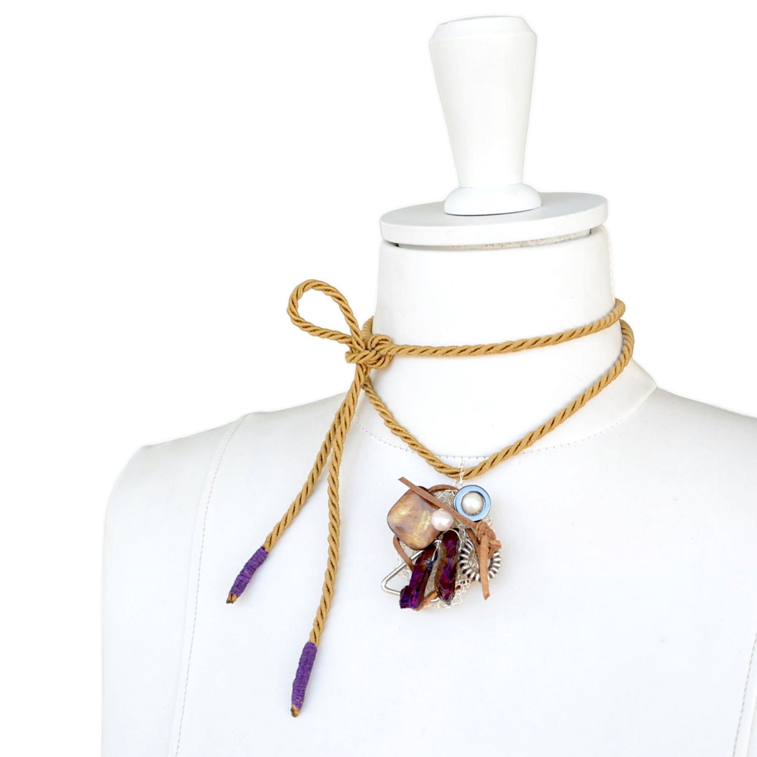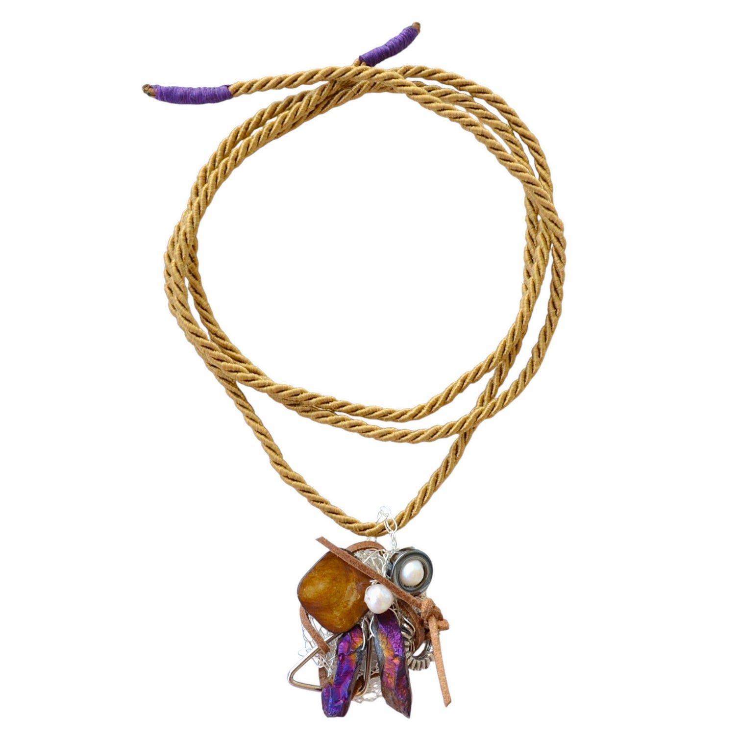 Titanyum kuvars, sedef, hematit, kültür incili, ipek kordon, mumlu ip