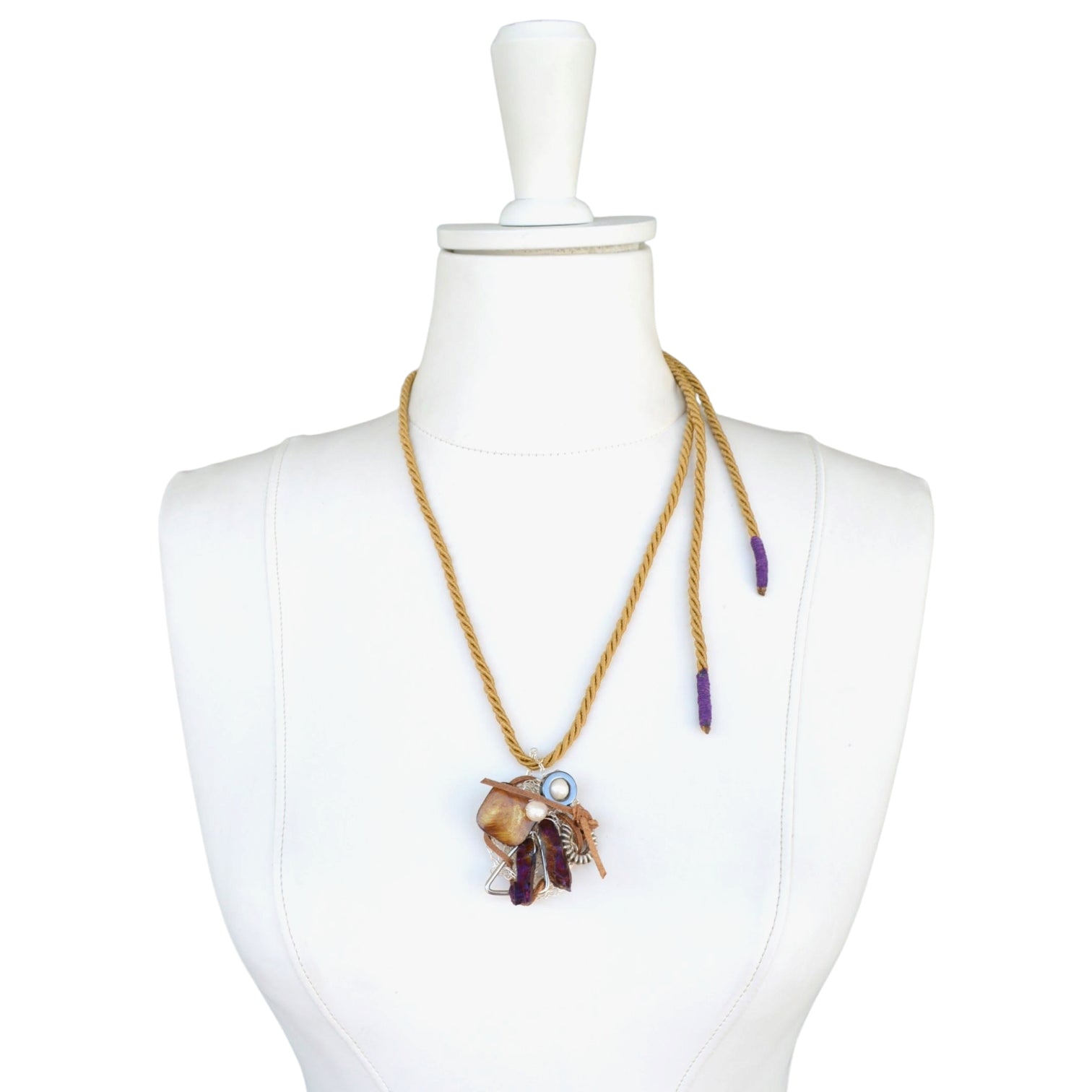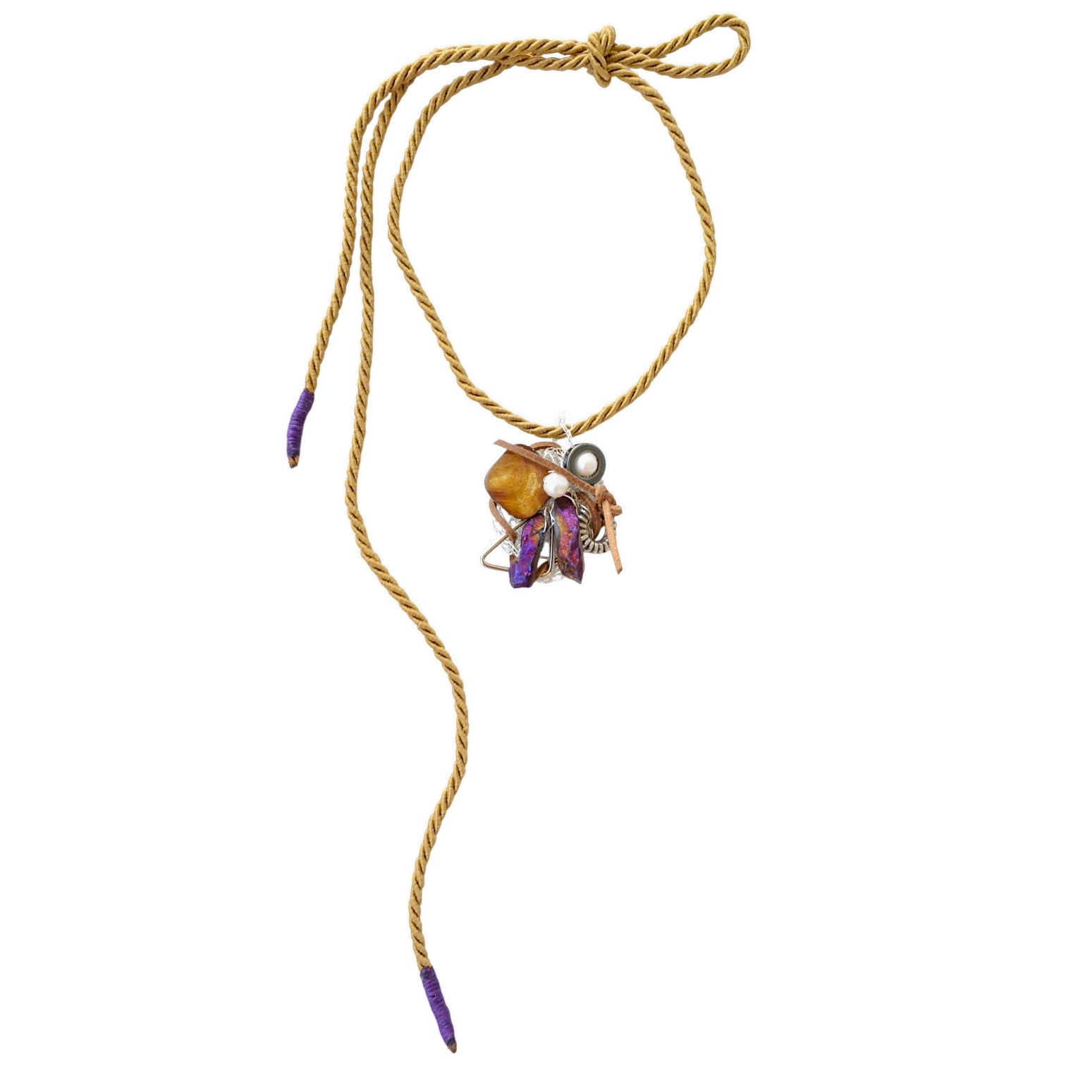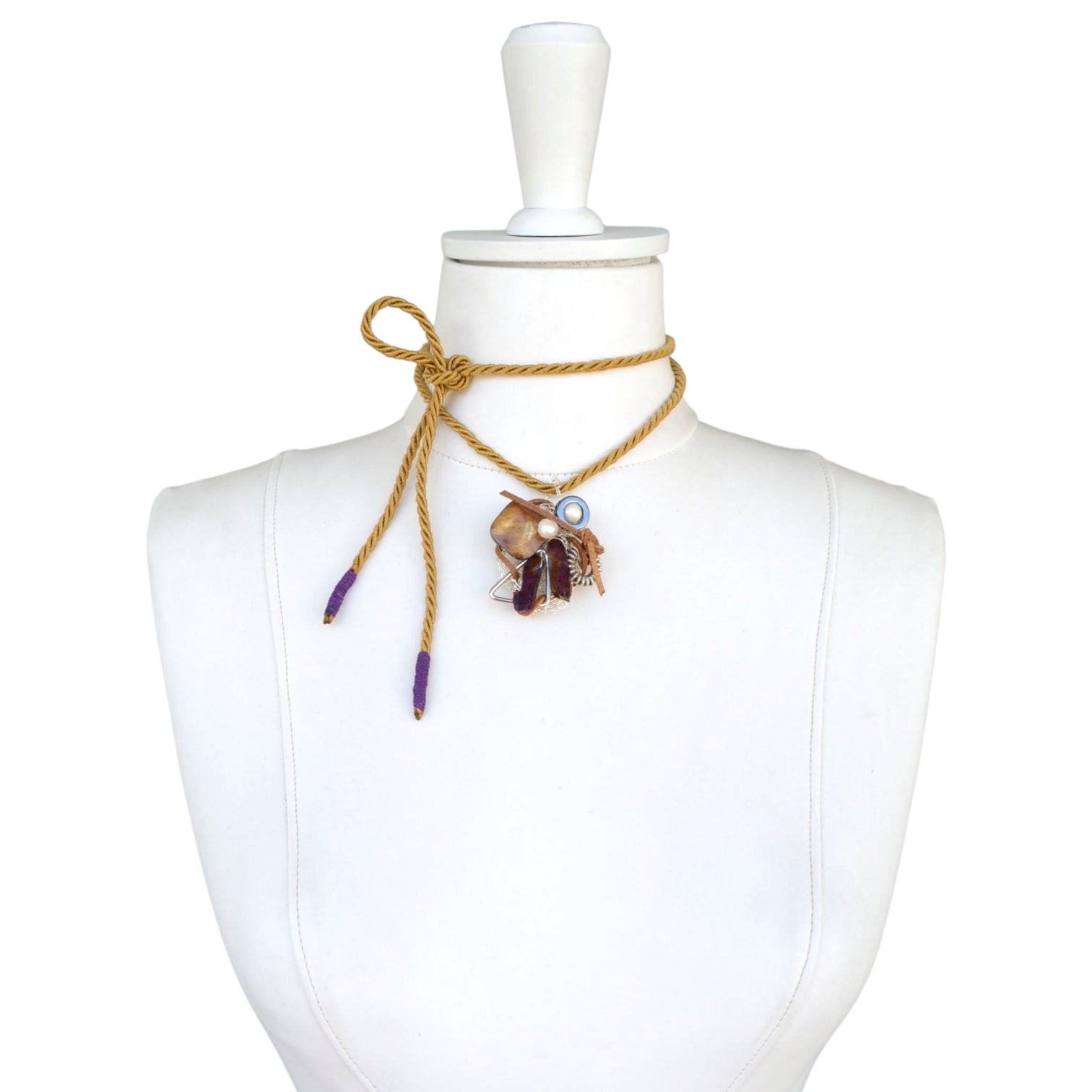 Titanyum kuvars, sedef, hematit, kültür incili, ipek kordon, mumlu ip