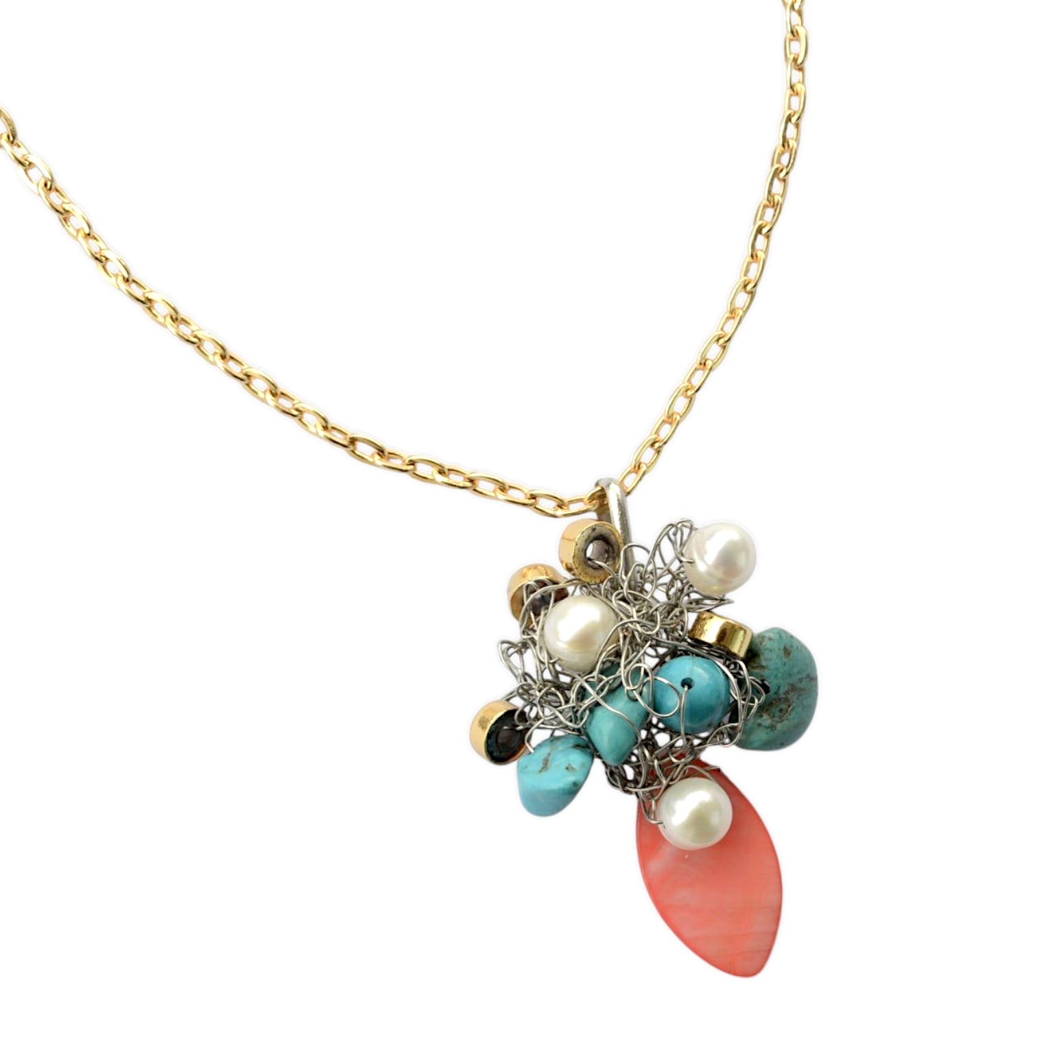 Turkuaz, Mercan, Sedef, Tatlı su incisi, altın kaplama metal