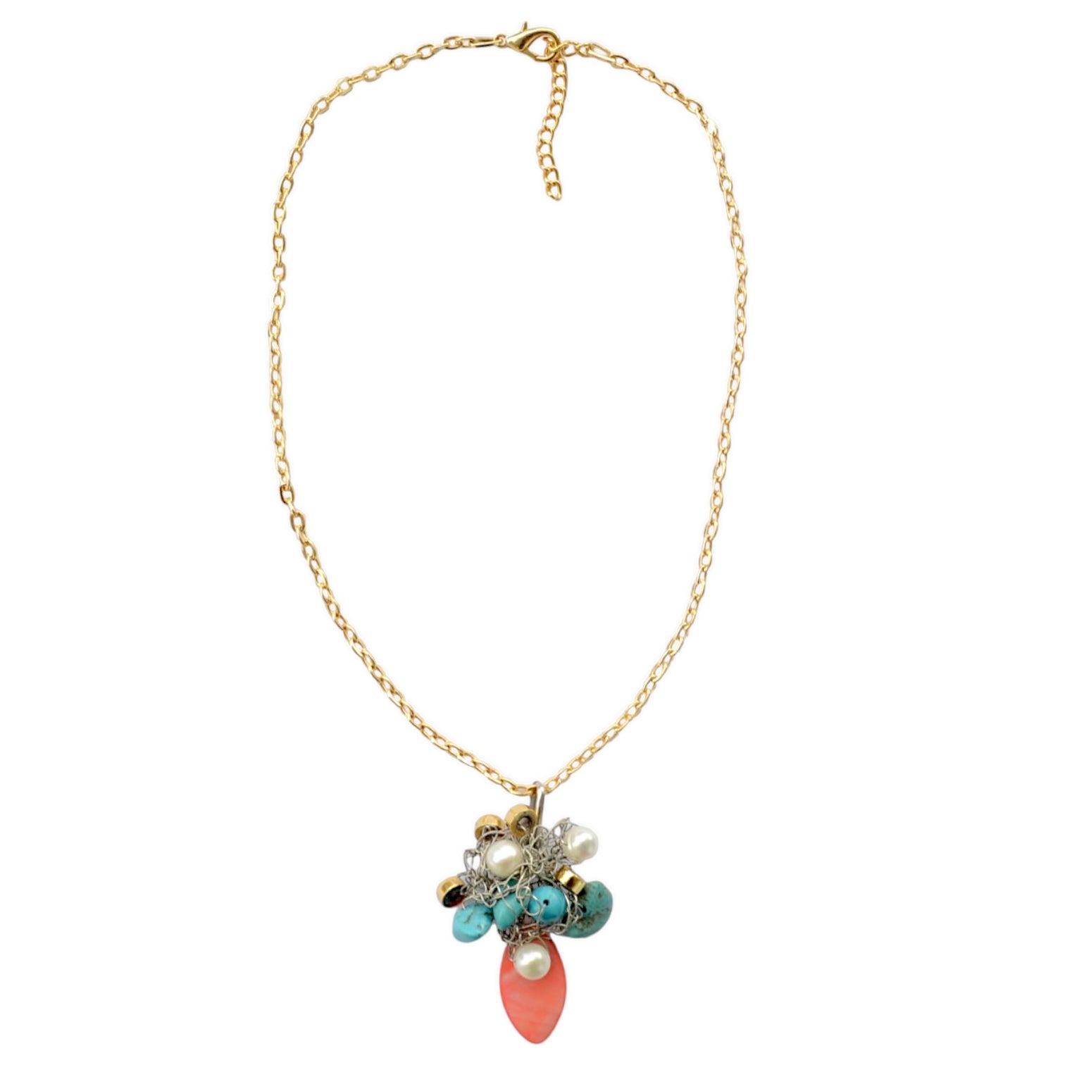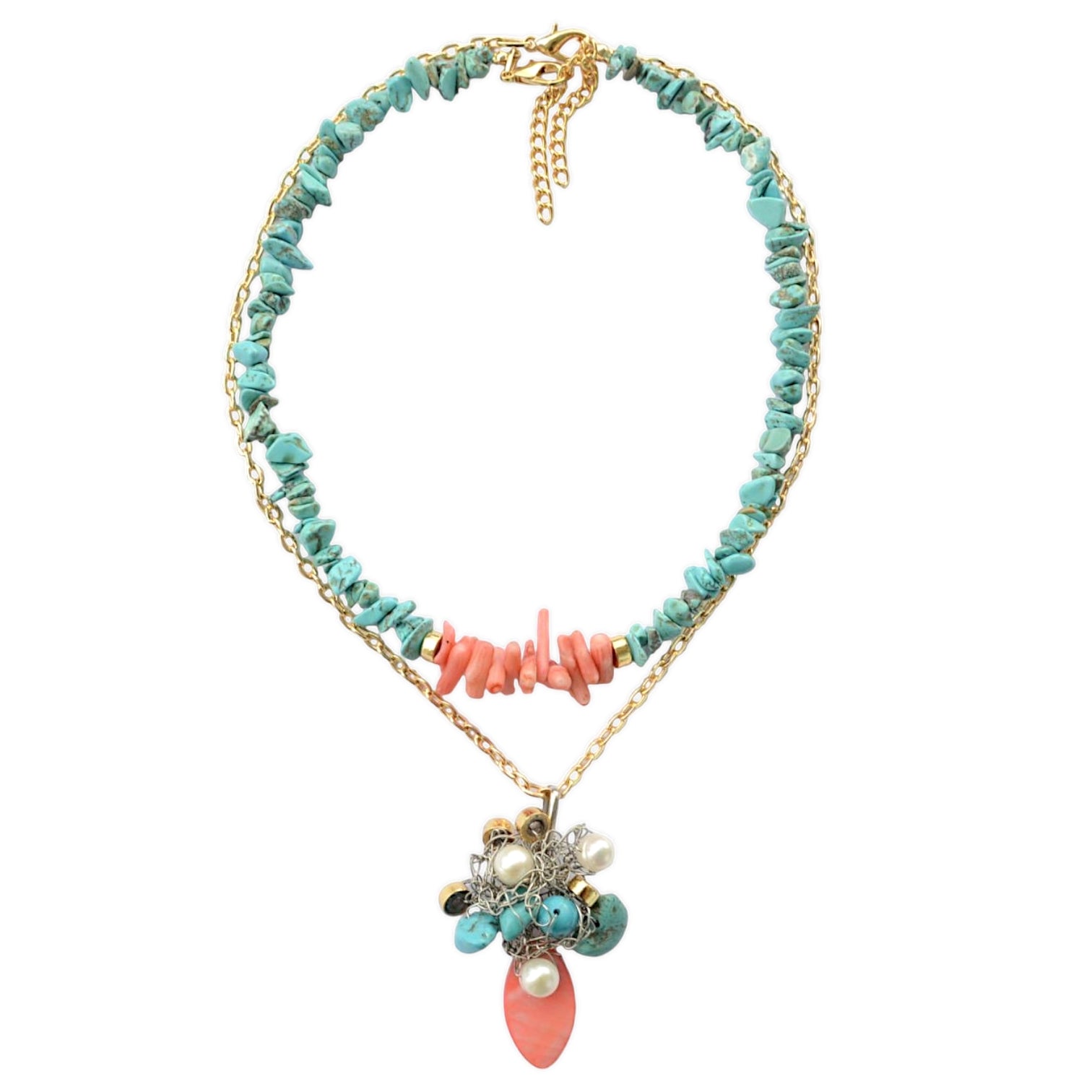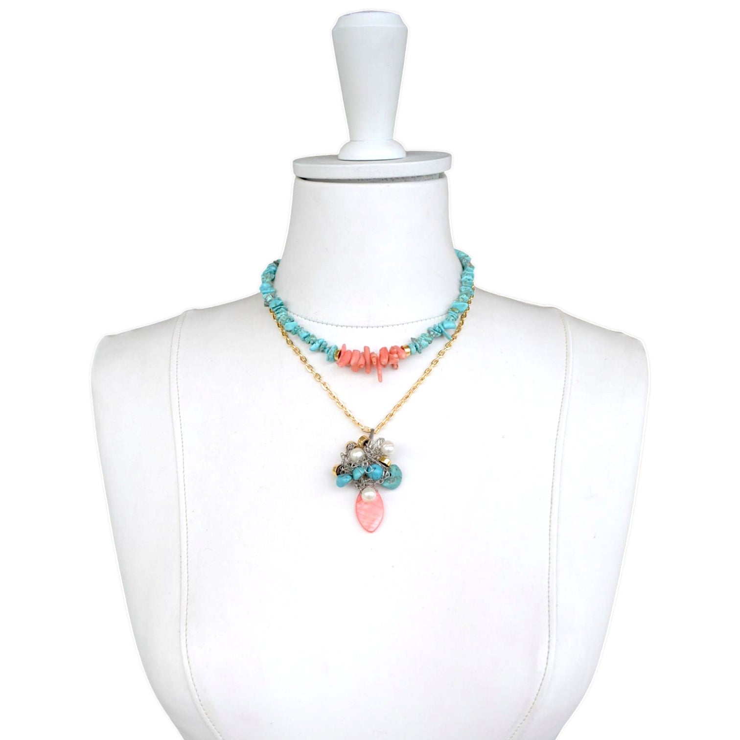 Turkuaz ve Mercan Taşlı 2li Kolye Set